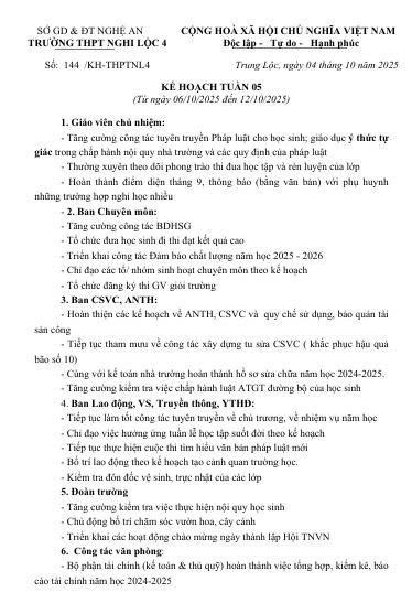 TRƯỜNG THPT NGHI LỘC 4, THÔNG BÁO TẬP TRUNG HỌC SINH LỚP 10 NĂM HỌC 2025 – 2026!13/08/2025 209 lượt xem