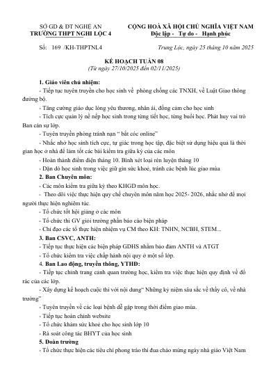 TRƯỜNG THPT NGHI LỘC 4, THÔNG BÁO TẬP TRUNG HỌC SINH LỚP 10 NĂM HỌC 2025 – 2026!13/08/2025 231 lượt xem